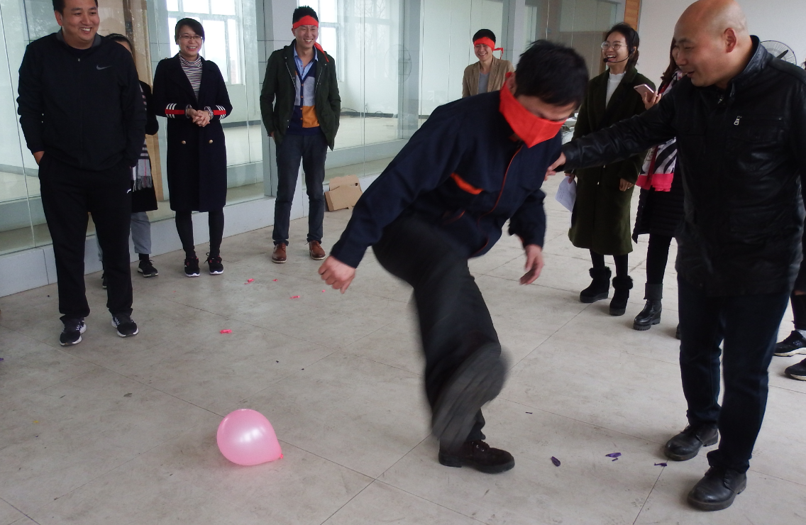 蒙眼踩氣球,一指揮一執(zhí)行,促進(jìn)了彼此之間的信任,提高了執(zhí)行力和溝通能力。