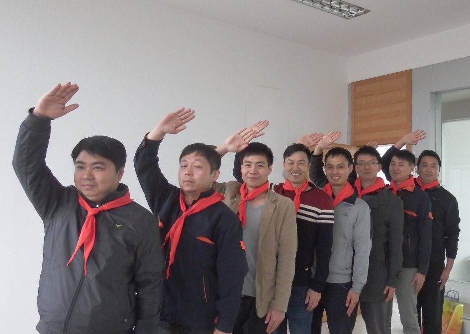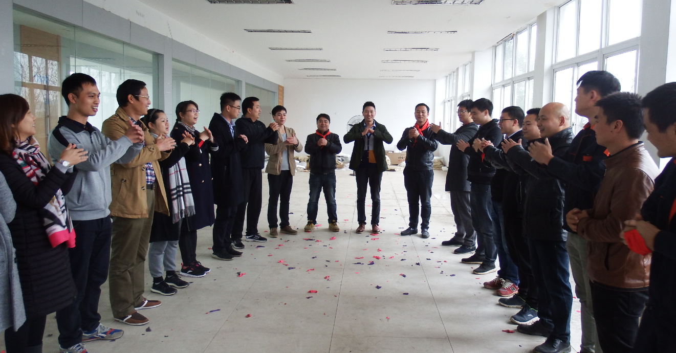 公司總經(jīng)理(一排左四)融入團(tuán)隊(duì)一起娛樂,常務(wù)副總做“戰(zhàn)前”動員,人事總監(jiān)為活動督導(dǎo)。